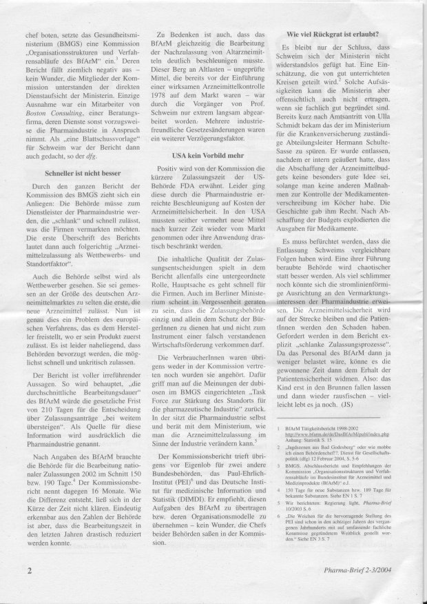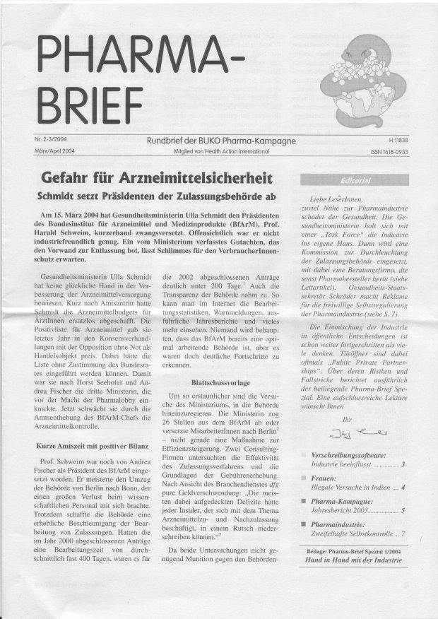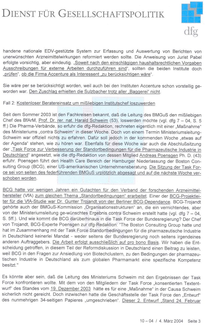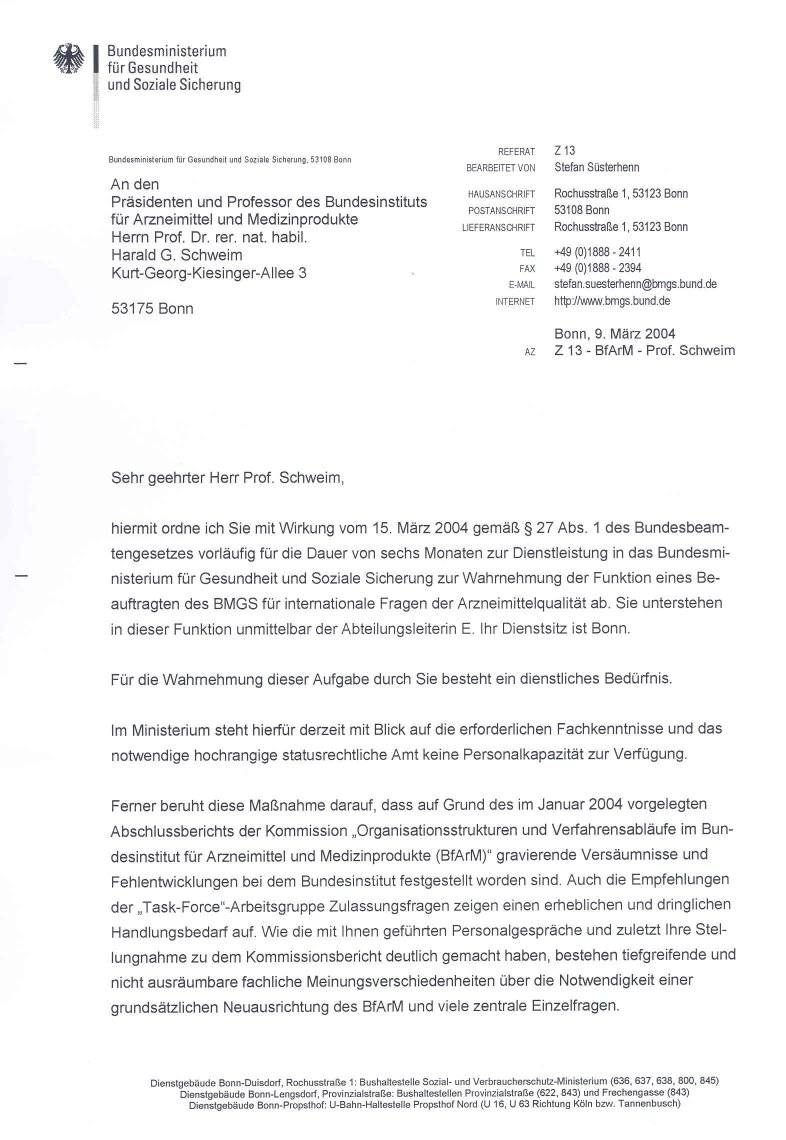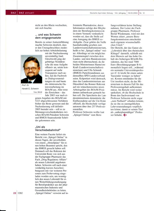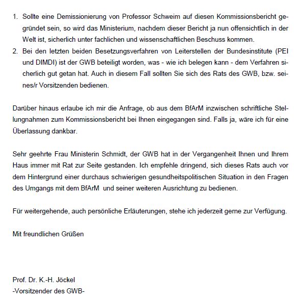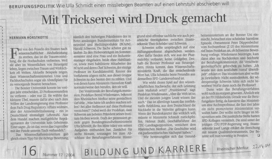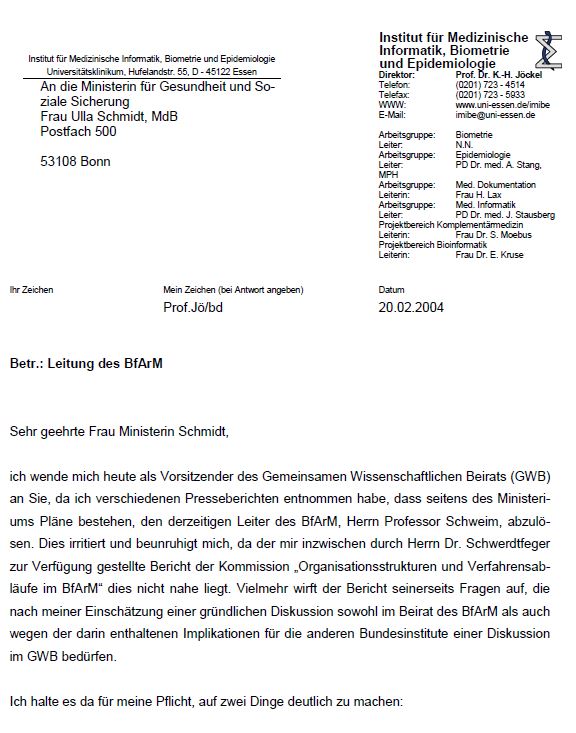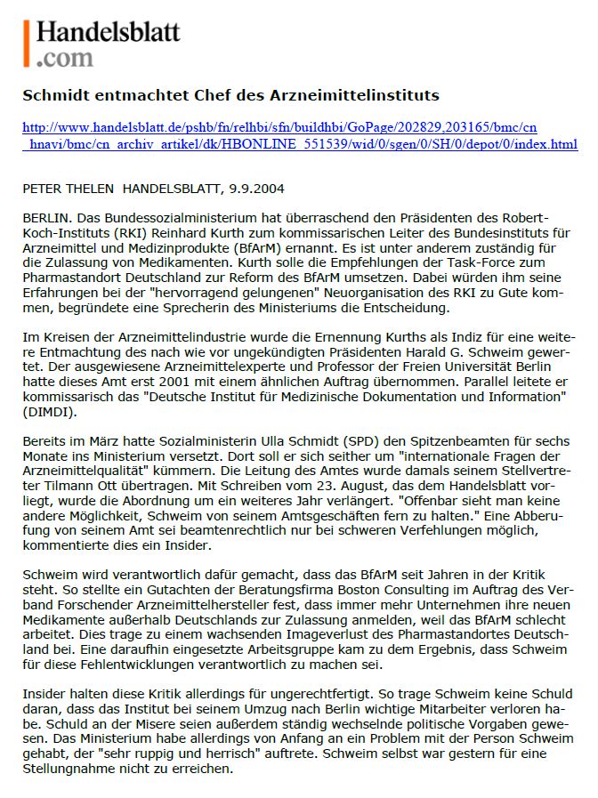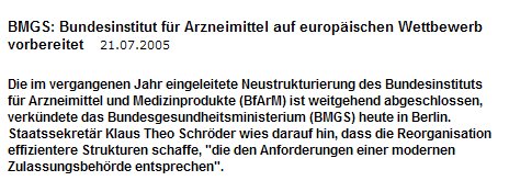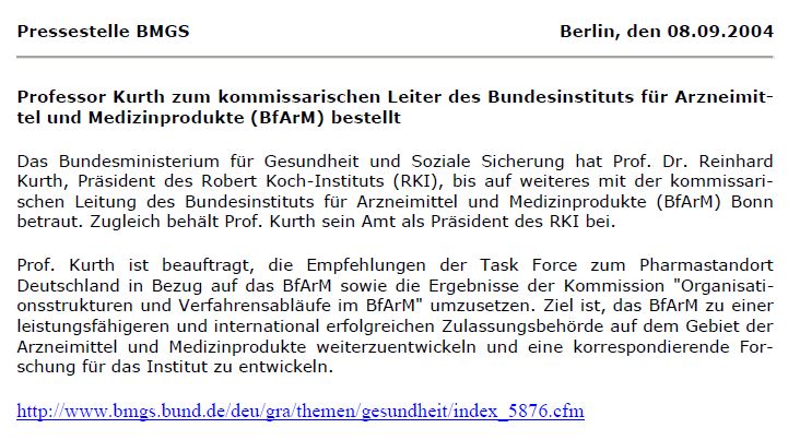 (PM der Bundesärztekammer) „Schmidt entmachtet Chef des Arzneimittelinstituts“ berichtet das