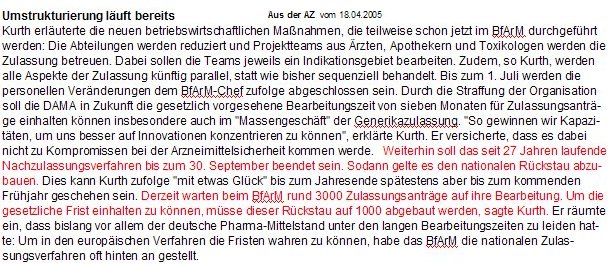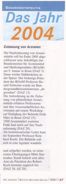 2006 – gewollte resultierende Lähmung des BfArM führt zu Kompetenzverlust,