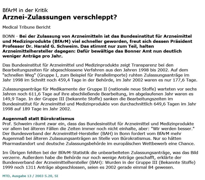 durch BfARM weitgehend unnötig, wird ja bestens durch EMEA (und